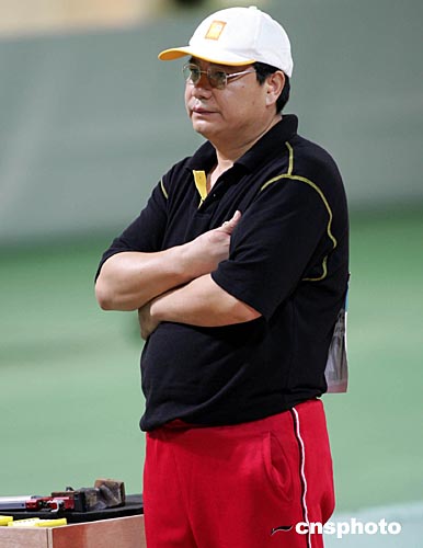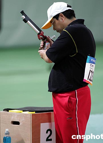 當(dāng)?shù)貢r間八月十四日下午雅典奧運會男子十米氣手槍比賽中,四十四歲的中國“老槍”王義夫一直落后于一名俄羅斯選手,在擊發(fā)最后一顆子彈時,他冷靜沉思片刻后一槍將金牌“擊落”。中新社記者:任晨鳴