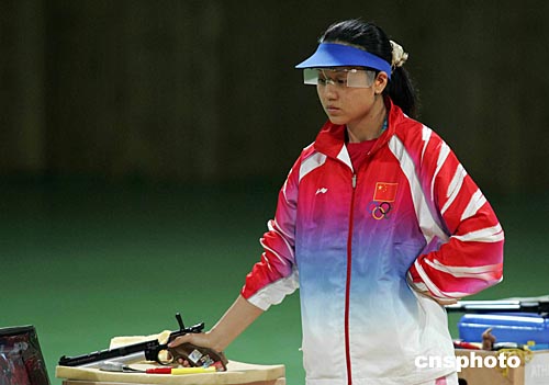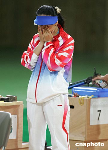 當(dāng)?shù)貢r(shí)間八月十五日上午,在雅典舉行的第二十八屆奧運(yùn)會(huì)射擊女子十米氣手槍決賽中,中國(guó)隊(duì)選手任潔沖擊金牌未果,以四百八十二點(diǎn)三環(huán)的成績(jī)名列第四。中新社記者:毛建軍