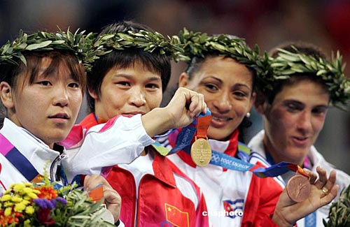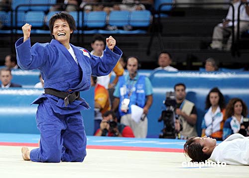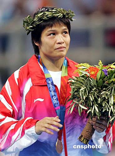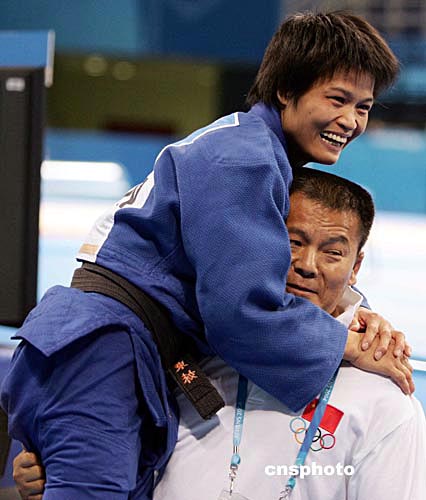 當(dāng)?shù)貢r(shí)間八月十五日,在雅典舉行的第二十八屆奧運(yùn)會(huì)女子五十二公斤級(jí)比賽中,中國(guó)選手冼東妹戰(zhàn)勝日本選手橫澤由貴獲得金牌。中新社記者:毛建軍