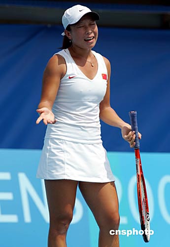 中國唯一參加雅典奧運會女子網(wǎng)球單打比賽的鄭潔,當?shù)貢r間8月15日首輪迎戰(zhàn)日本名將山杉愛,在大好局面下可惜以微弱比分失敗。中新社記者:任晨鳴