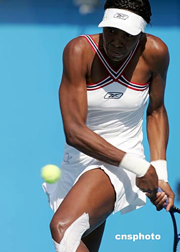 美國(guó)網(wǎng)球明星大威廉姆斯,在妹妹退出本屆奧運(yùn)會(huì)后帶傷參加比賽。當(dāng)?shù)貢r(shí)間8月15日,大威廉姆斯頂著烈日身穿新款比賽服參加首輪比賽,并輕松過關(guān)。中新社記者:任晨鳴