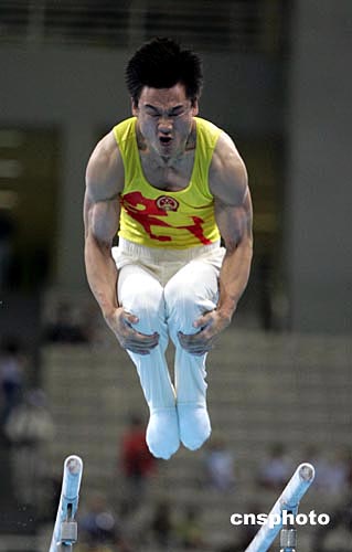 當(dāng)?shù)貢r間八月十六日晚,雅典奧運男子體操團(tuán)體比賽在奧運體操比賽館舉行,中國隊衛(wèi)冕失利,僅獲得第五名。中新社記者:毛建軍