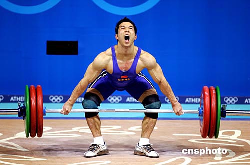 雅典當(dāng)?shù)貢r間二00四年八月十六日,雅典奧運(yùn)會男子舉重六十二公斤級比賽在雅典尼凱亞奧林匹克舉重館舉行,中國選手石智勇和樂茂盛包攬金銀牌。作者:新體