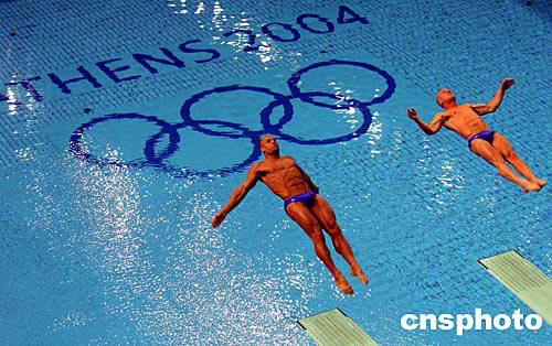 當地時間8月16日晚在雅典奧運會跳水館,世界各國選手為實現各自的奧運夢想而從十米跳臺縱身躍入湛藍的碧波之中。中新社記者:任晨鳴