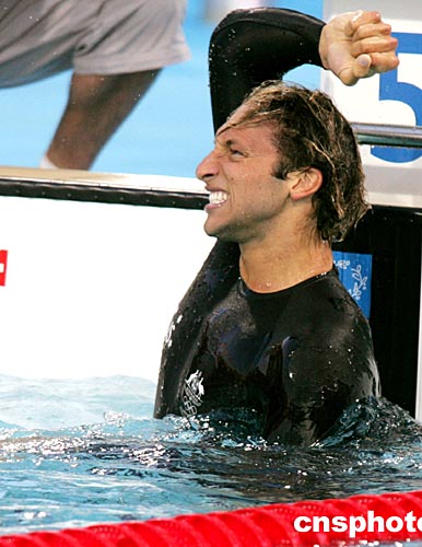 幾乎與第二十八屆奧運(yùn)會(huì)絕緣的澳大利亞飛魚(yú)索普,當(dāng)?shù)貢r(shí)間8月16日晚在雅典奧運(yùn)會(huì)男子100米自由決賽中獲得冠軍,再次登上冠軍領(lǐng)獎(jiǎng)臺(tái)。中新社記者:任晨鳴