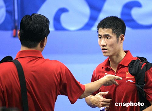 雅典時間8月17日,世界排名第一的奧運(yùn)會乒乓球男單頭號種子選手王勵勤以4比1戰(zhàn)勝荷蘭老將凱恩,率先闖進(jìn)男單前16名。中新社記者:張煒