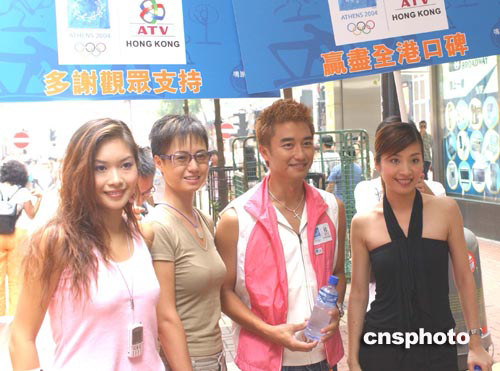 香港藝人18日在銅羅灣鬧市為亞洲電視奧運(yùn)節(jié)目造勢(shì)。中新社記者:趙振清