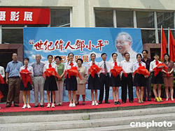 由中國新聞社主辦的紀(jì)念鄧小平誕辰一百周年《世紀(jì)偉人鄧小平》大型攝影展,八月十九日在經(jīng)濟(jì)特區(qū)廣東汕頭揭幕。圖為中國新聞社社委、社長助理周鋒,中國新聞社廣東分社副社長薛東和、鄭小紅,中共汕頭市委常委、宣傳部長王蕓,副部長翁小慶等有關(guān)官員出席開幕式并剪彩。作者:李怡青