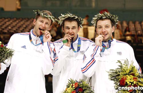 在當(dāng)?shù)貢r間8月19日舉行的男子擊劍團(tuán)體比賽中,法國三名劍客Gael Touya, Damien Touya, Julien Pillet榮獲冠軍。