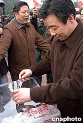 元月四日,由福建省、福州市紅十字會(huì)等主辦的“匯聚人道力量、彰顯八閩愛心”為印度洋海嘯災(zāi)區(qū)募捐活動(dòng)在福州舉行。中共福建省委書記盧展工來到活動(dòng)現(xiàn)場(chǎng)捐款。作者:劉可耕