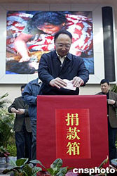 一月五日,中國(guó)國(guó)家體育總局各部門領(lǐng)導(dǎo)、職員以及各個(gè)項(xiàng)目運(yùn)動(dòng)員代表在北京國(guó)家體育總局舉行向東南亞受災(zāi)國(guó)家人民捐款活動(dòng),國(guó)家體育總局局長(zhǎng)劉鵬在捐款箱前捐款。中新社記者:盛佳鵬