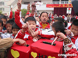 圖:廣西第一所孤兒學(xué)校為受海嘯襲擊的災(zāi)區(qū)捐款