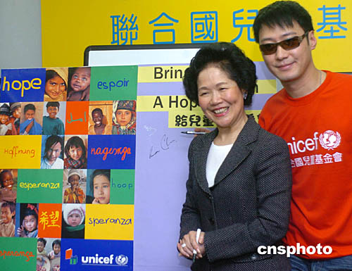 為南亞地震海嘯賑災籌款﹐聯(lián)合國兒童基金會香港委員會副主席陳方安生太平紳士﹑親善大使黎明6日在香港呼吁社會為南亞賑災獻愛心。中新社記者:趙振清