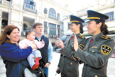 由于沙面是領館區(qū),很多外國人在此生活,所以隊員們的英語都是“一級棒”。據(jù)了解,這8名女隊員中,4人達到大學英語6級水平,2人達到專業(yè)英語8級水平,其他隊員至少也達到大學英語4級水平,能和外國人進行日常英語口語交流。(文/楊進、陳穗華、張文濤;圖/王燕)