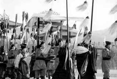 胡:這其實是《漢》劇真正的遺憾所在,有很多原因,有些是審片造成的技術(shù)性刪節(jié),使得情節(jié)不連貫。我們原來有60多集,刪到了58集。還有一些是拍攝時因為受非典影響,一些演員不能到位。在《漢》劇還有一些禮儀服色著裝也不準確,人物形象不統(tǒng)一,這都是受當時拍攝條件的影響。