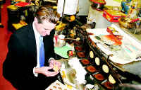 中新網(wǎng)1月12日電 據(jù)世界日報(bào)報(bào)道,舊金山市長紐森10日拜會(huì)華埠,并在華埠吃越南粉、嘗人參、為顧客整理頭發(fā),還親手做了兩個(gè)幸運(yùn)簽餅。