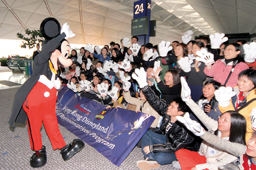 中新網(wǎng)1月12日電 據(jù)香港媒體報道,香港迪斯尼樂園五百名文化大使將陸續(xù)啟程前往美國佛羅里達州奧蘭度華特迪斯尼世界接受培訓,首批文化大使昨日出發(fā)。