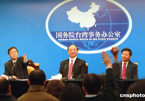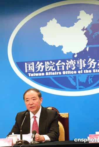 國臺辦經(jīng)濟局局長何世忠,一月十二日在北京舉行的發(fā)布會上就兩岸包機發(fā)表五點意見。作者:滿會喬
