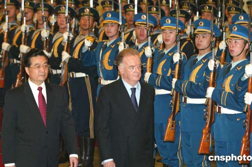 胡錦濤說,中葡在上世紀(jì)末通過友好協(xié)商,順利解決了澳門問題,兩國關(guān)系進(jìn)入新的發(fā)展時期。為進(jìn)一步推動中葡關(guān)系的全面發(fā)展,中方愿與葡方一道,保持兩國高層領(lǐng)導(dǎo)人互訪和接觸,密切兩國議會、政黨的友好交流。深化雙邊經(jīng)貿(mào)合作,支持雙方企業(yè)積極探索擴大合作的新領(lǐng)域、新途徑。通過相互支持語言教學(xué)、增派留學(xué)生、互辦文化、體育活動,以及建立聯(lián)合科學(xué)實驗室等方式,擴大在高教、科技、司法等領(lǐng)域的交流與合作。