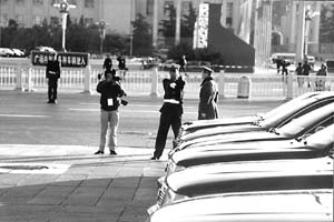 張景龍等下午3時多便到了人民大會堂北門。他說,一般情況下,特勤民警要提前1小時到,特殊情況下,甚至可能提前24小時進(jìn)行現(xiàn)場控制。