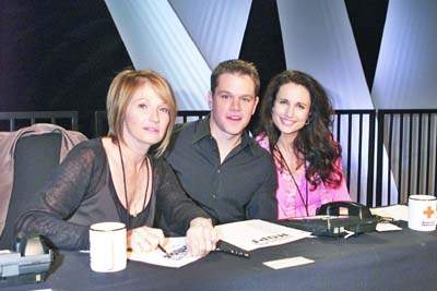 其他出席了慈善晚會的還有杰米·福克斯、娜奧密·華茲、休·格蘭特、詹姆斯·伍茲、安妮特·貝寧、烏瑪·瑟曼、昆汀·塔倫蒂諾、羅伯·洛、小羅伯特·唐尼、羅伯特·德尼羅、德魯·芭莉摩爾和安迪·加西亞等一大批好萊塢知名影星。此外,兩位美國前總統(tǒng):老布什和比爾·克林頓也一同出場,他們受了現(xiàn)任總統(tǒng)小布什的委托,充當美國政府為海嘯災區(qū)慈善募捐的先頭部隊。
