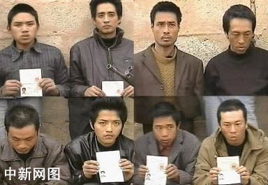 在伊被綁架的八名中國工人在錄像中展示護照號碼