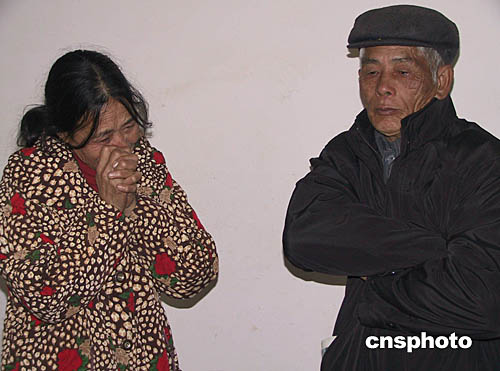 一月十九日,福建平潭十九歲勞工魏武在伊拉克被武裝分子綁架,其母薛金嬌(圖左)在接受記者采訪時希望中國政府能盡快救出其子。圖為當?shù)乩先嗽谖杭覄裎恳恢笨奁难饗。作?王東明