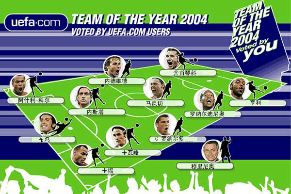 中新網(wǎng)1月20日電 經(jīng)過超過120萬的網(wǎng)友進(jìn)行投票選擇,歐洲足聯(lián)本周三在自己的官方網(wǎng)站上公布了2004年的歐洲足壇最佳陣容。在這個名單中,新科歐洲足球先生舍甫琴科領(lǐng)銜鋒線,與他搭檔的,是阿森納前鋒亨利,后者也成為唯一一名連續(xù)4年入選歐洲足壇最佳陣容的球員。
