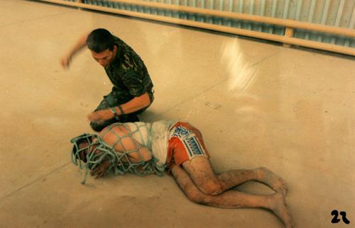 目前法庭已向媒體公布了22張這些士兵的“虐囚”圖片。這些照片在2003年5月被士兵當(dāng)作實施這些行為的“紀念品”而攝下,虐囚的地點則是在伊拉克南部城市巴士拉的一家救援物資倉庫。
