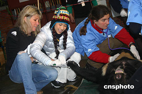 中新網(wǎng)1月21日電 一月二十日,“拯救黑熊”愛心大使、香港藝人莫文蔚再次到訪亞洲動物基金位于成都的黑熊救護(hù)中心,正式認(rèn)養(yǎng)一頭剛被四川省林業(yè)廳解救的亞洲黑熊,并為這頭幸運(yùn)的黑熊命名為“寶貝”。
