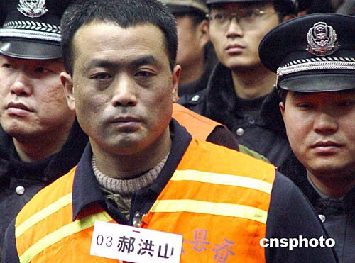 | 一月二十一日上午九時(shí),許昌市中級(jí)人民法院對(duì)“中原涉黑第一案”——宋留根、馬獻(xiàn)洲、郝洪山特大涉黑團(tuán)伙案,進(jìn)行一審宣判。圖為主犯之一的郝洪山被判處死刑,緩期兩年執(zhí)行,剝奪政治權(quán)利終身。以宋留根為首的涉黑犯罪團(tuán)伙是五十年來(lái)河南最大的犯罪集團(tuán)。作者:胡珂