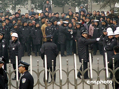 一月二十一日上午九時(shí),河南許昌市中級(jí)人民法院對“中原涉黑第一案”——宋留根、馬獻(xiàn)洲、郝洪山特大涉黑團(tuán)伙案,進(jìn)行一審宣判。當(dāng)?shù)孛癖娋奂诜ㄍネ獾却袥Q。以宋留根為首的涉黑犯罪團(tuán)伙是五十年來河南最大的犯罪集團(tuán)。作者:胡珂