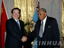 中新網(wǎng)1月24日電 人民日報(bào)報(bào)道,中國國家副主席曾慶紅在前往拉美5國訪問途中,23日在斐濟(jì)的楠迪市作短暫技術(shù)停留,斐濟(jì)總統(tǒng)伊洛伊洛和總理恩加拉塞專程從首都前來看望,并分別與曾慶紅進(jìn)行友好交談。
