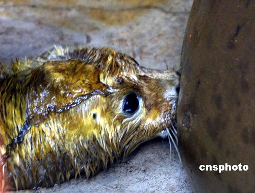 | 2005年1月24日早晨,在秦皇島海洋歡樂公園的水族館內,一只出生僅一天的小斑海豹全身覆蓋著土黃色的皮毛,在媽媽的產(chǎn)房內享受著母愛。據(jù)了解,這只可愛的小海豹在秦皇島市是人工喂養(yǎng)條件下降生的第一只小海豹,它的媽媽名叫“公主”,是6年前來到港城的,經(jīng)過幾年的人工喂養(yǎng),2004年10月份訓養(yǎng)員發(fā)現(xiàn)溫順的公主懷孕了,在為其安排了一間單獨的產(chǎn)房后,1月23日早晨4點左右時,工作人員聽到公主奇特的叫聲,5點多時,發(fā)現(xiàn)公主身邊多了一只小海豹和一堆胎盤。斑海豹別名海豹、港海豹,海豹科Phocidae,分布主要在渤海、黃海、東海也有發(fā)現,個別遠達南海,屬國家二級保護動物。也是惟一在我國渤海沿岸繁殖的鰭腳類動物。學忠 攝