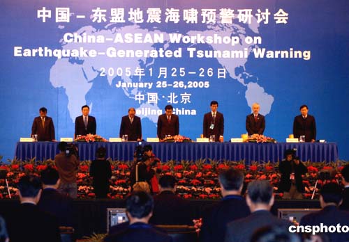 中新社北京一月二十五日電(記者孫自法)在印度洋地震海嘯發(fā)生整整一個(gè)月后的今天,中國(guó)-東盟地震海嘯預(yù)警研討會(huì)在北京飯店開(kāi)幕。來(lái)自中國(guó)和東盟十國(guó)、東盟秘書(shū)處與聯(lián)合國(guó)相關(guān)機(jī)構(gòu)的專(zhuān)家和官員,以及印度、斯里蘭卡、美國(guó)、日本、韓國(guó)等國(guó)的觀察員代表近百人與會(huì)。