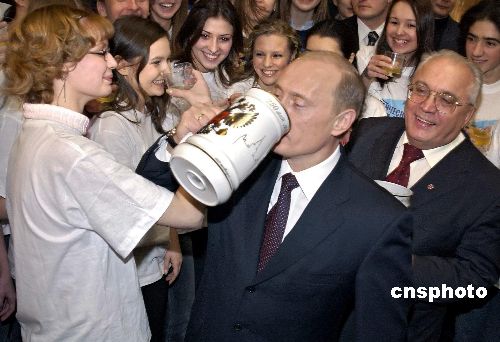 2005年1月25日,莫斯科大學(xué)隆重舉行成立250周年慶典活動。俄羅斯總統(tǒng)普京前來道賀,與學(xué)生們一起海量痛飲,共慶盛典。作者:Ic/cnsphoto
