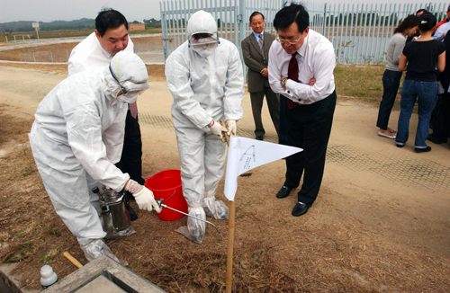 香港漁護(hù)署昨日將濕地公園二期暫時(shí)封閉,除職員外禁止閑雜人士進(jìn)入。兩名穿上全副保護(hù)白袍的工作人員,在其它同事協(xié)助下,先確定有關(guān)蟻穴的位置,再插上木柱作識(shí)別,然后用泥耙扒松泥土,由其中一人將已稀釋的殺蟲水,灌入蟻穴內(nèi),將蟻后殺死“滅族”。另一人則在旁噴灑殺蟲水,以防螞蟻爬上同事身上傷人。在上址上班的員工則表示,在郊野發(fā)現(xiàn)蟻穴的情況十分普遍,只要備妥殺蟲水,便不會(huì)有問題。
