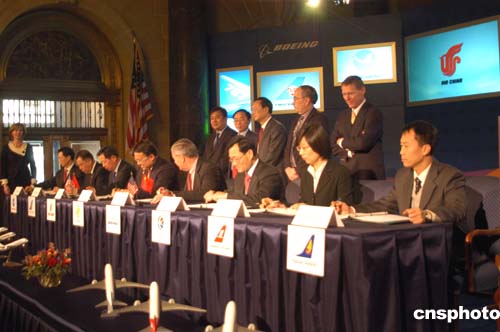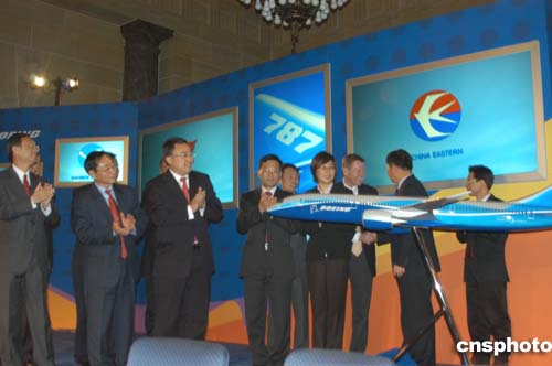 根據(jù)雙方當(dāng)天在美國商務(wù)部簽署的框架協(xié)議,中國國航、東航、南航、海南航空、廈門航空、上海航空將從波音公司訂購六十架波音七E七飛機(jī),按照平均目錄價格計算,此協(xié)議總價值七十二億美元。這批飛機(jī)將從二00八年開始陸續(xù)交付使用。