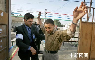 1月30日,在伊拉克南部城市巴士拉,一名男子在進入投票站之前接受檢查。當(dāng)?shù)貢r間1月30日上午7點,伊拉克各地投票點向選民準(zhǔn)時開放,伊拉克半個多世紀(jì)以來的首次大選拉開了序幕。