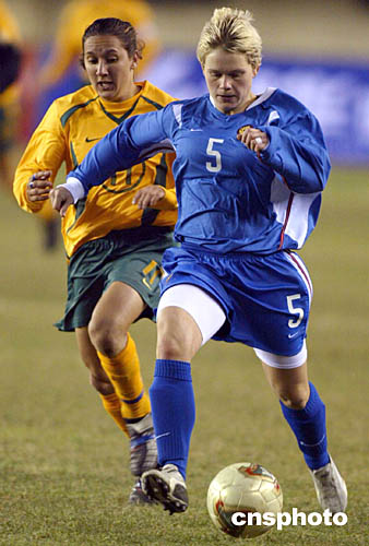 二月一日,二零零五年泉州四國女足錦標(biāo)賽在福建泉州進(jìn)行了最后一天的比賽,在澳大利亞隊(duì)與俄羅斯隊(duì)的比賽中,俄羅斯隊(duì)零比五不敵澳大利亞隊(duì)。中新社記者:盛佳鵬