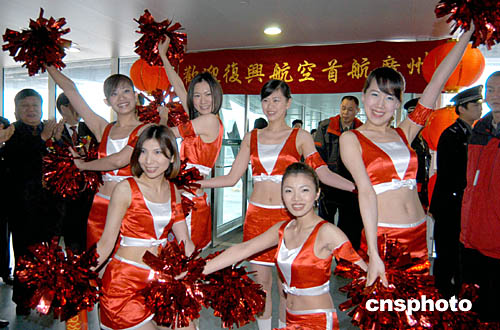 圖為由六位空姐組成的啦啦隊(duì),清一色的紅色短裝,最惹人注目。作者:劉衛(wèi)勇