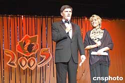 當?shù)貢r間二月五日晚聯(lián)合舉辦的大華盛頓地區(qū)春節(jié)聯(lián)歡晚會上,多年來首次出席華人春節(jié)聯(lián)歡活動的馬里蘭州州長厄里克夫婦向當?shù)厝A人恭賀新春。作者:余東暉