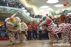 華人的舞醒獅迎春表演吸引眾多美國人觀看。作者:余東暉
