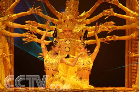 據(jù)該團(tuán)領(lǐng)隊(duì)介紹,這是他們繼雅典版《千手觀音》之后,新改編的第三版,在動(dòng)作編排上加強(qiáng)了舞蹈動(dòng)作的質(zhì)感,增加了千手千眼的變換展示和觀音將愛灑向人間的舞蹈造型,還特別編排了“拜年的動(dòng)作”,其中一個(gè)造型取名為“盛世開屏”,希望借此代表中國6000萬殘疾人給觀眾帶去美好的祝福。