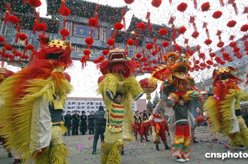 圖:北京地壇廟會(huì)群獅鬧新春