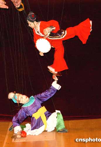 當(dāng)?shù)貢r間二月七日晚,曾在全球四十多個國家演出過四千多場的中國福建泉州木偶劇團(tuán)在聯(lián)合國總部舉行的中國春節(jié)文藝晚會上進(jìn)行專場演出。演出結(jié)束后,畫家出身的聯(lián)合國秘書長安南夫人南.安南興致勃勃地來到后臺向演員了解木偶戲演出技巧。作者:龔文謨