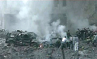 英國《獨立報》的記者費思克告訴美國有線電視新聞網(wǎng):“現(xiàn)場非常血腥。我看到車內(nèi)有數(shù)具正在燃燒的尸體。爆炸留下的彈坑約有5米深,所以這是一枚大炸彈。至少有22輛小車仍在燃燒,其中一輛車被炸到三層樓那么高的地方。另一輛車看起來被炸到圣喬治賓館墻外面去了。在街對面,水正從破裂的水管中涌出。當(dāng)消防隊員到達(dá)現(xiàn)場時,他們不得不將消防水管拖過遇難者的尸體以撲滅大火!