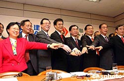 香港政團(tuán)民建聯(lián)與港進(jìn)聯(lián)16日召開記者會(huì)宣布合并,成立“民主建港協(xié)進(jìn)聯(lián)盟”,簡稱則仍叫民建聯(lián)。作者:譚達(dá)明