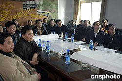 二零零五年二月十六日上午,國(guó)家安全生產(chǎn)監(jiān)督管理局局長(zhǎng)王顯政(前右一)、副局長(zhǎng)趙鐵錘(前左一)一行代表國(guó)務(wù)院安委會(huì)事故調(diào)查組,在發(fā)生特別重大瓦斯爆炸事故的遼寧海州立井事故現(xiàn)場(chǎng),聽(tīng)取事故搶險(xiǎn)小組對(duì)事故情況以及搶險(xiǎn)情況的匯報(bào)。遼寧省省長(zhǎng)張文岳(前左二)、副省長(zhǎng)劉國(guó)強(qiáng)(前右二)也參加會(huì)議。作者:盛佳鵬
