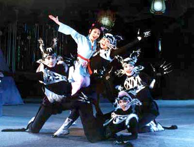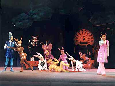 除了動物,劇中的人物也在發(fā)生著變化。重排前大蘭是一個極壞、無藥可救的人物形象,最后以死結(jié)束;創(chuàng)作人員在進(jìn)行重排時做了改動——大蘭通過教育,變成了一個好人。